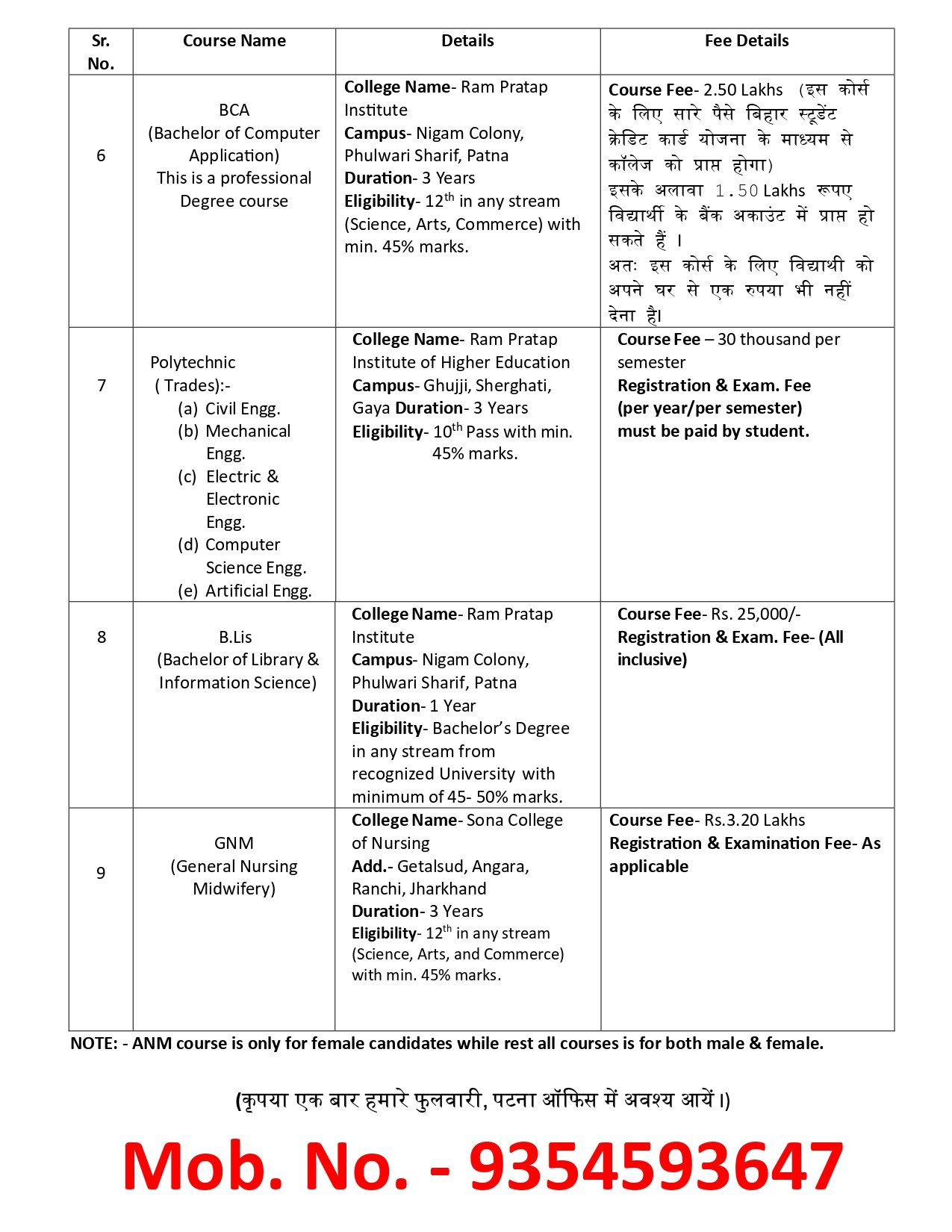 | 1 | ANM | 2 YEARS | 12th PASS HAVING 40% IN MATHS | 200000 | 5000/- | APPLY NOW |